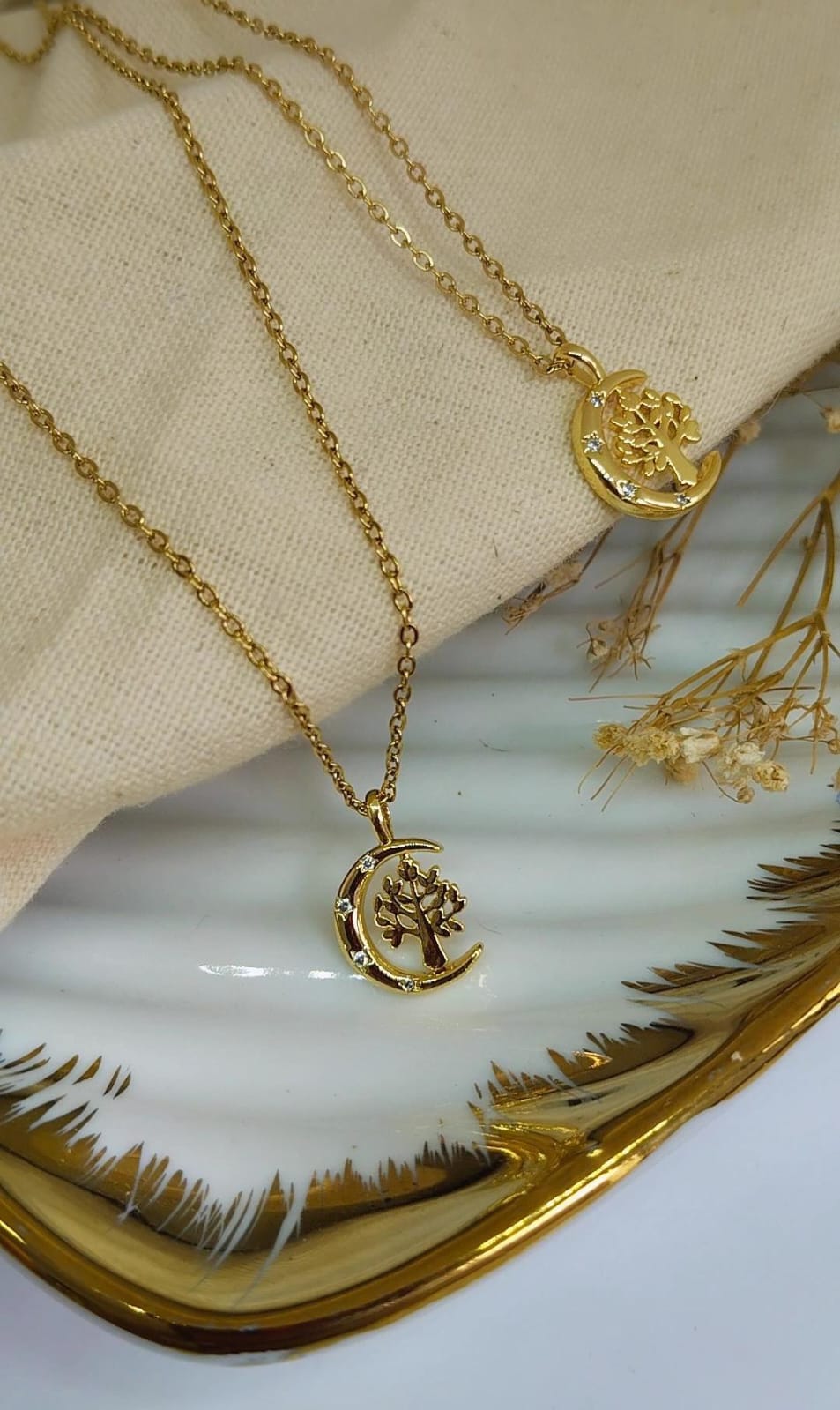 CADENA ACERO SENCILLA LUNA ARBOL VIDA 16