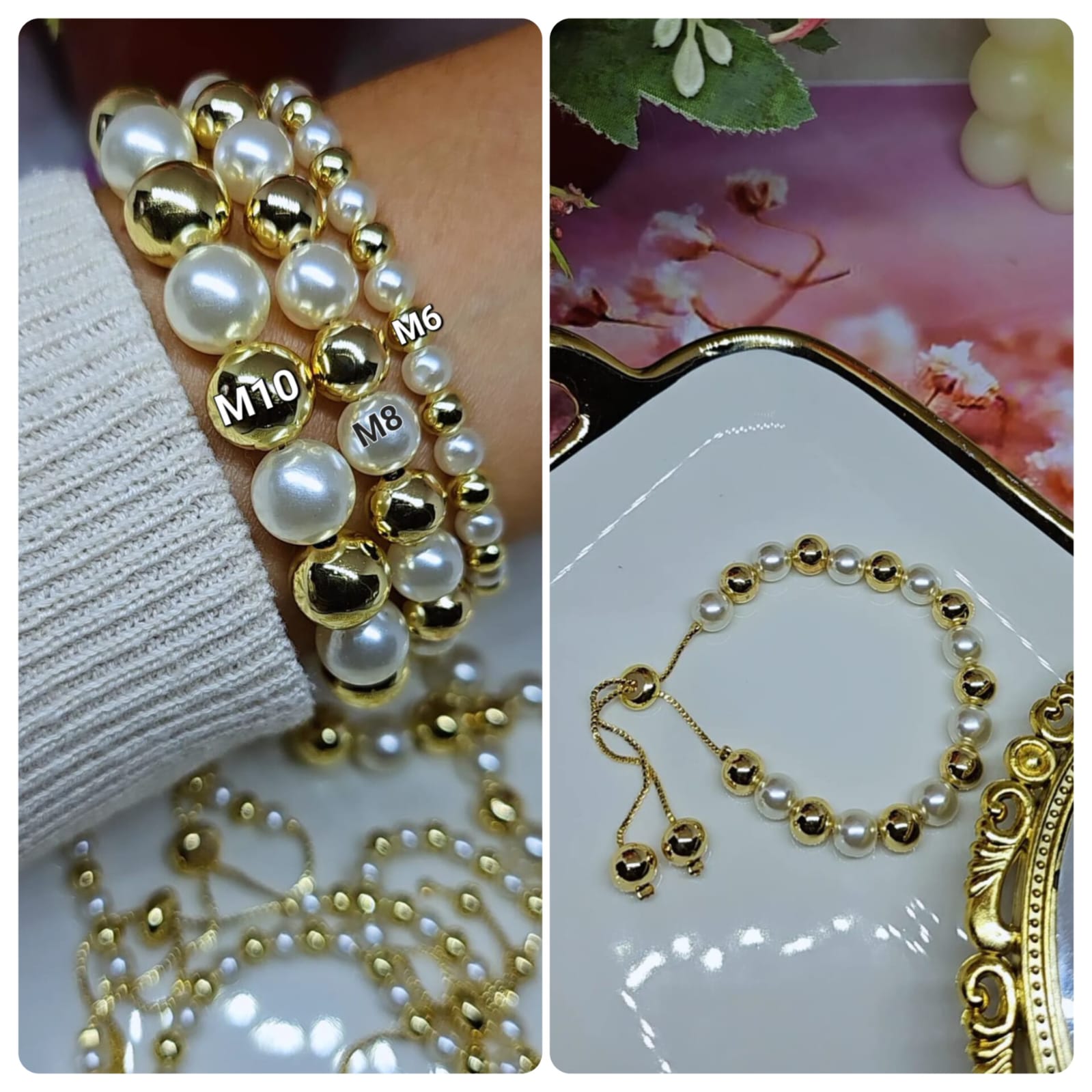 PULSERA RODIO AJUSTABLE M8 CHUNKY PERLA 12