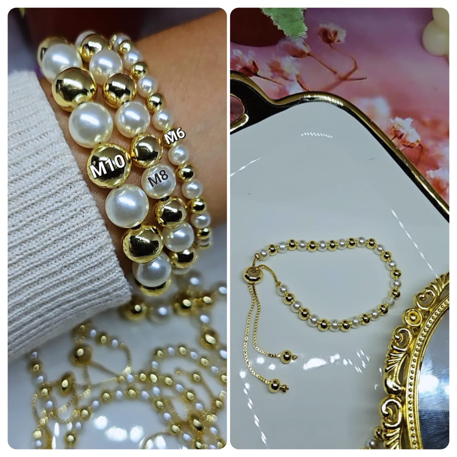 PULSERA RODIO AJUSTABLE M6 CHUNKY PERLA 10
